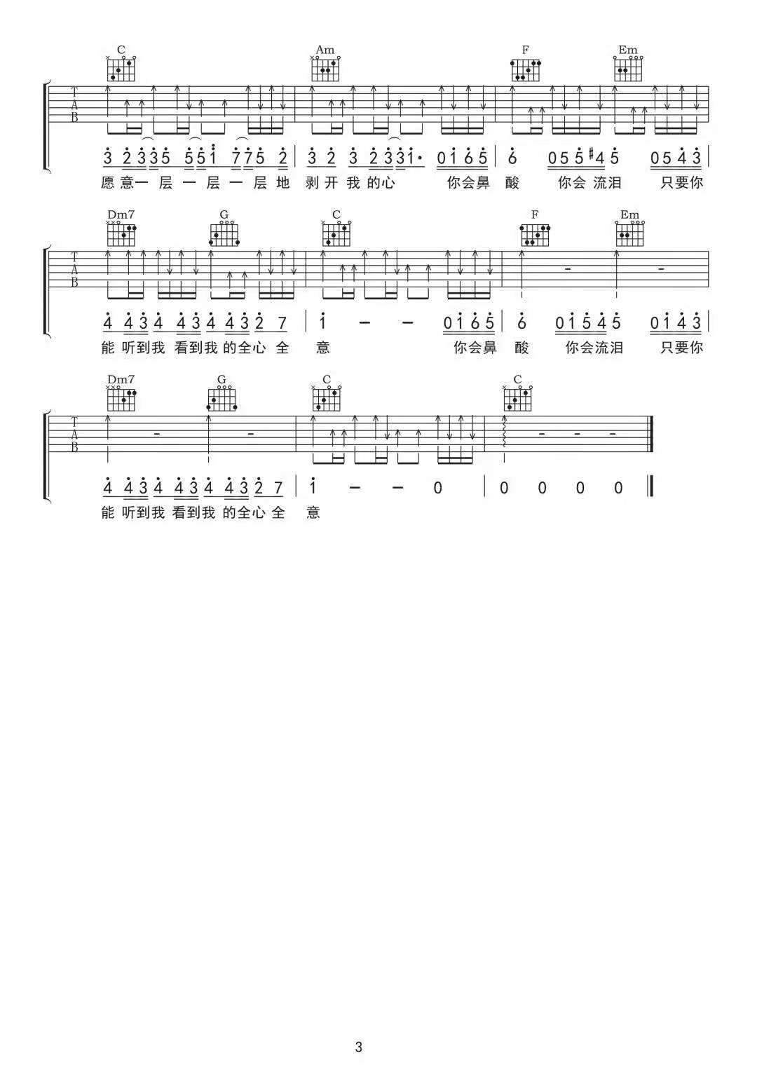 洋葱吉他谱_刘大壮_《洋葱》C调原版弹唱六线谱